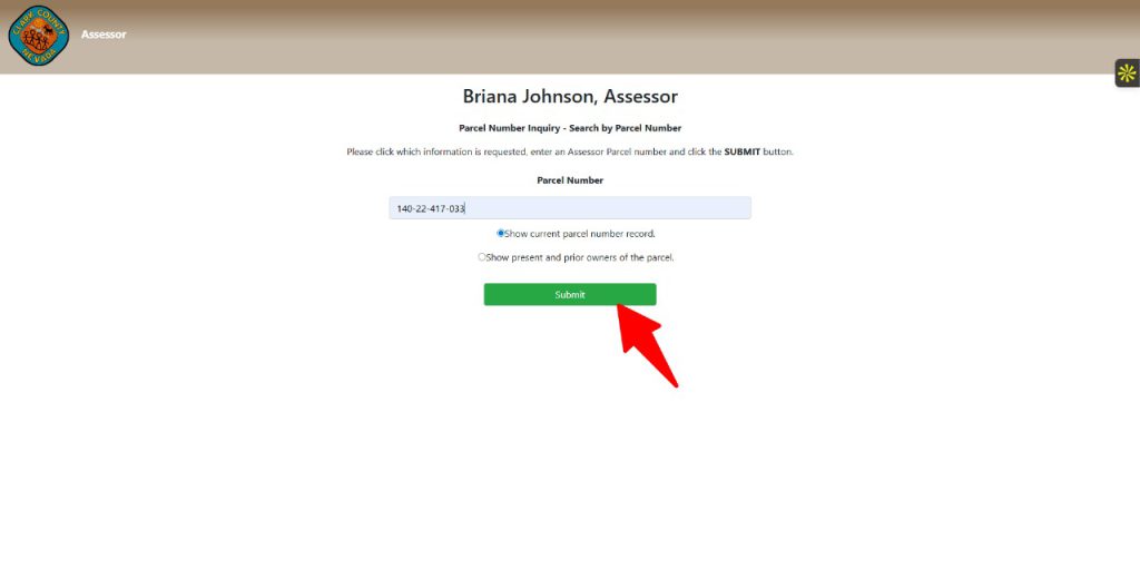 Inside the Property Search tool, choose “Parcel ID” as your search type.